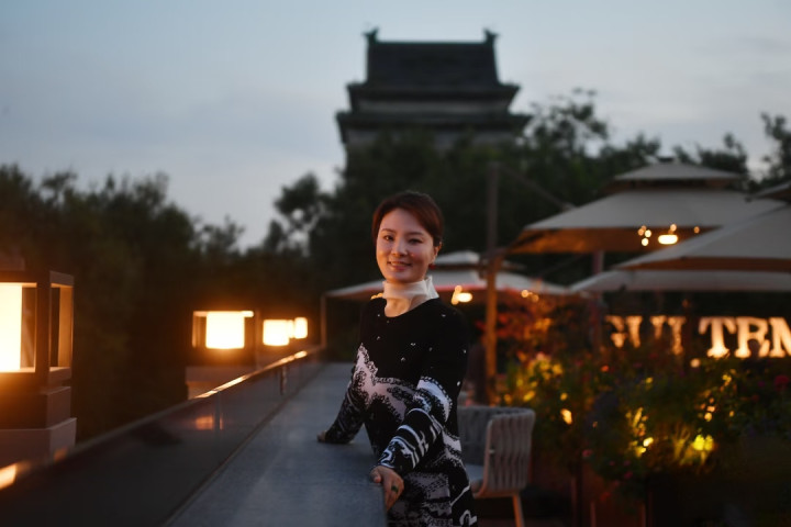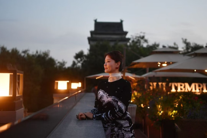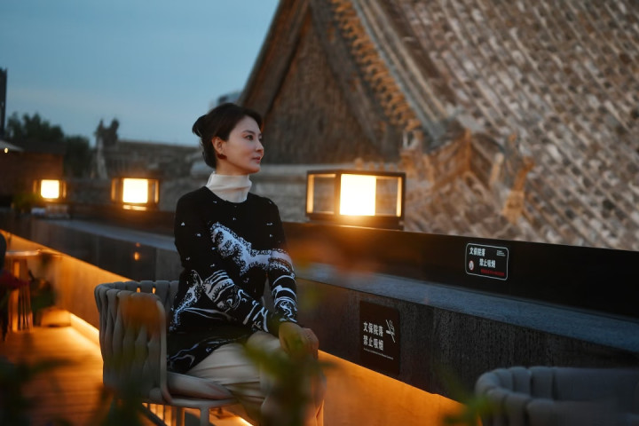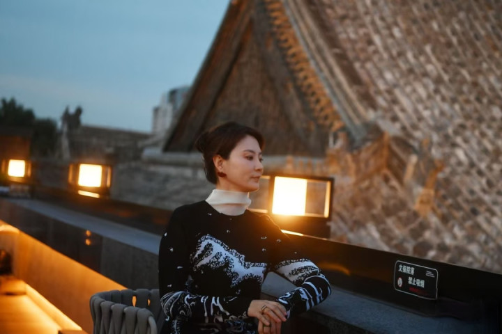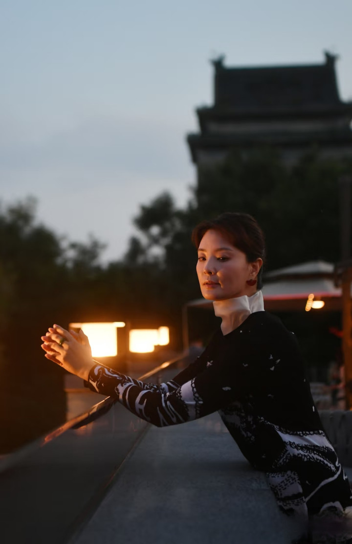 网上配资平台配资门户刘芳菲黑白印花长裙配高领内搭, 利落短发衬得气质温婉, 美貌动人